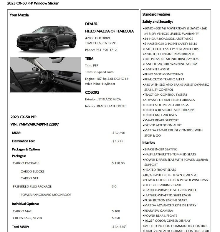 Aggressive Wholesale-Level Pricing, Discounted Price with Financing Package- Loaded S Preferred Plus with AWD and all the options. High MSRP and best price on the market. You won't find a better deal on a comparable CX-50. Low Rates, Low Payments. We’re Changing the Game. Call 618-833-2166 to Save More, Keep More, and Learn Why We’re Different.